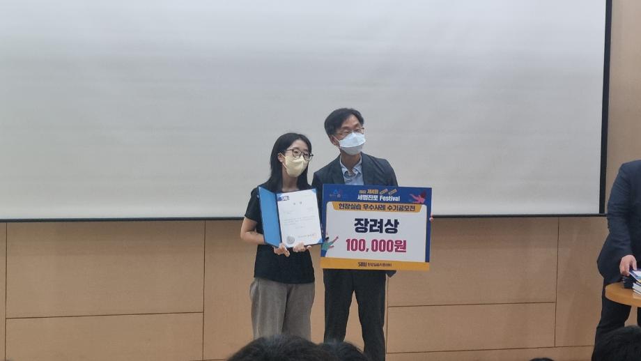 지난 9월 1일 학술관에서 진행된 현장실습 수기 공모전 시상식에서 세명대학교 연기예술학과 17 윤태원, 19 박주빈, 20 김은경 학생이 장려상을 수상했습니다!🔥💐
