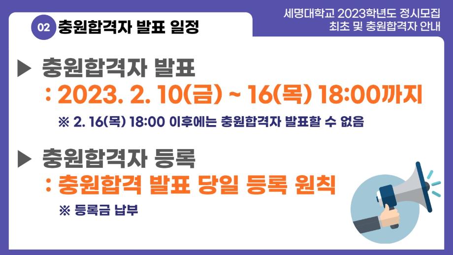 ※ 16일 18:00 이후 충원합격자 발표할 수 없음.