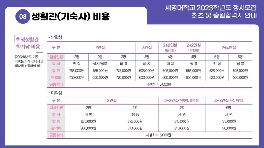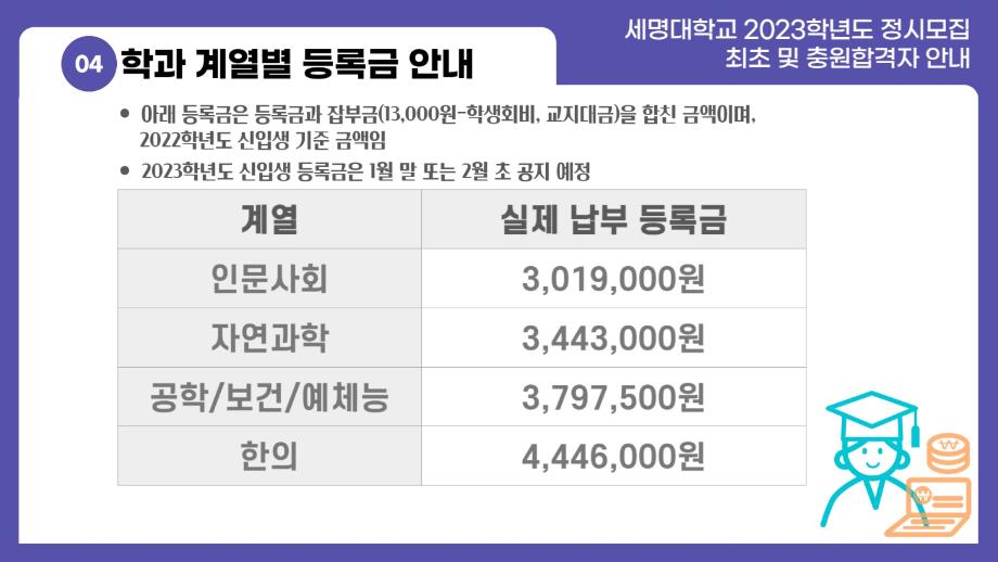※ 2023학년도 신입생 등록금은 1월 말 또는 2월 초 공지 예정