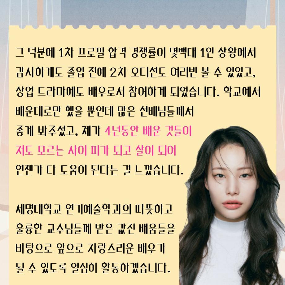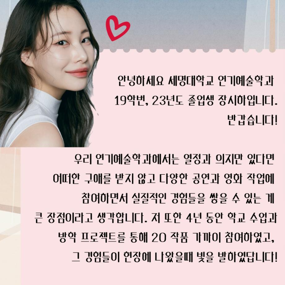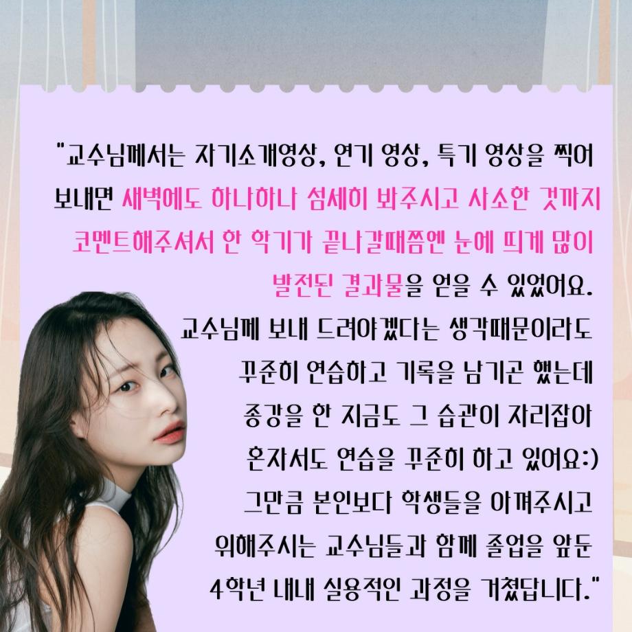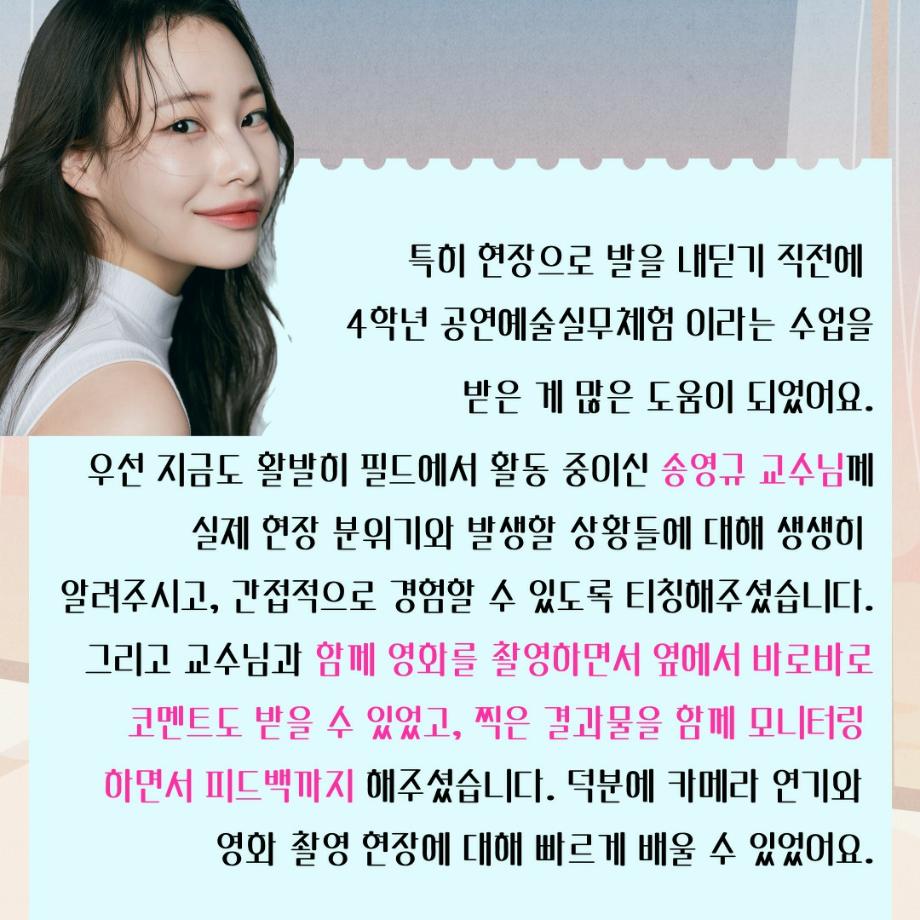 본문 시작 홈으로 커뮤니티 학과소개 입학정보 교수소개 학과과정 커뮤니티 공연예매 안내 홈페이지가이드 포토갤러리 공지사항 포토갤러리 작품DB 동아리 학사일정 학생회 포토갤러리 페이스북 트위터 프린트 [세명대학교 연기예술학과 졸업생 interview] - 장시하편 연기예술학과 2653 2023-02-02 [세명대학교 연기예술학과 졸업생 interview] 23년도 졸업생 19학번 장시하 선배님이 졸업 후에도 좋은 소식으로 재학생들에게 용기와 의지를 끌어올려주셨습니다🔥 23학번 신입생들을 위한 응원의 메세지도 있으니 꼭 확인해 보세요😉😚 다들 이번년도도 힘내서 꿈에 더 가까워지길 바라요🐰 목록 이전[세명대학교 연기예술학과 졸업생 interview] - 유태혁, 유수진편 다음 극단 각인각색 인큐베이팅 공연 - 3/4 (사분의 삼) 담당부서 : 연기예술학과 담당자 : - 연락처 : 043-649-1733 최종수정일 : 2024-10-26 만족도조사 만족도 조사 이 페이지에서 제공하는 정보에 대하여 만족하시나요? 매우만족 만족 보통 불만족 매우불만족