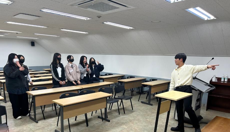 본문 시작 홈으로 커뮤니티 학과소개 입학정보 교수소개 학과과정 커뮤니티 공연예매 안내 홈페이지가이드 포토갤러리 공지사항 포토갤러리 작품DB 동아리 학사일정 학생회 포토갤러리 페이스북 트위터 프린트 2023 제천여고 전공탐색 연기예술학과 2718 2023-05-08 제천여고 학생들이 세명대학교 공학관에서 진행하는 전공 탐색 프로젝트에 참여했습니다. 학생들은 블랙박스와 태양아트홀, 연습실, 소품실 등 다양한 장소를 탐방했고, 진행되는 수업의 모습도 볼 수 있었습니다. 제천여고 학생들에게 학관을 안내하며 전공 탐색을 도와준 학생들과 수업시간에도 참관을 허락해주신 교수님, 학생분들께 감사의 인사를 전합니다. 목록 이전2023년 하계 표준/자율현장실습 신청 안내 다음 2023 스승의 날 & 성년의 날 행사 담당부서 : 연기예술학과 담당자 : - 연락처 : 043-649-1733 최종수정일 : 2024-10-26 만족도조사 만족도 조사 이 페이지에서 제공하는 정보에 대하여 만족하시나요? 매우만족 만족 보통 불만족 매우불만족