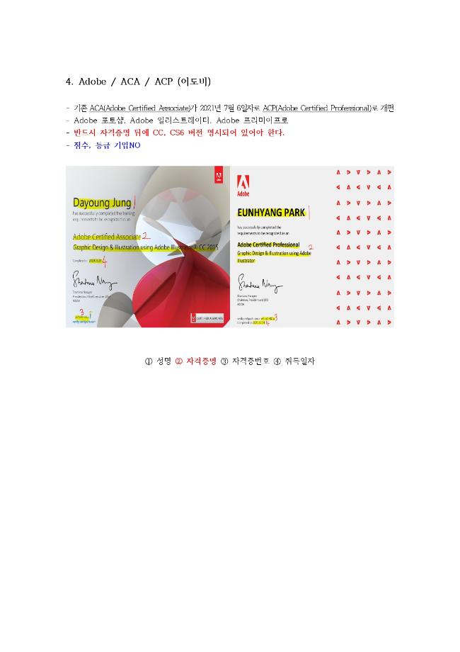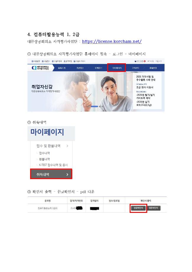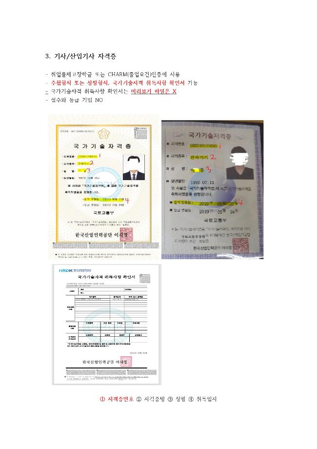 많이 올려주는 자격증 중에서 자격증번호 오류 또는 증빙자료 제출이 미흡한 경우들이 많습니다.