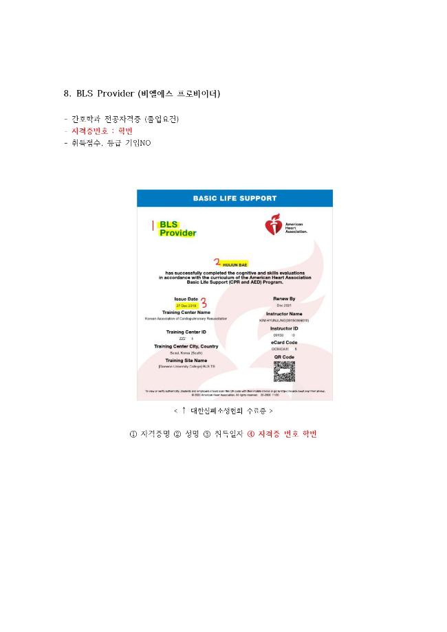 자격증 번호 및 자격증 별 첨부해야하는 증빙자료를 하단에 첨부하여 드리오니 참고하여 등록해주시기 바랍니다.